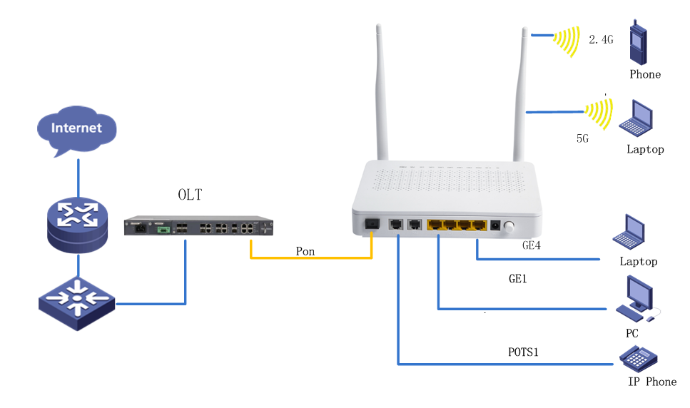 interface: 1* G/EPON+4*GE+2.4G/5.8G WLAN+2*FXS